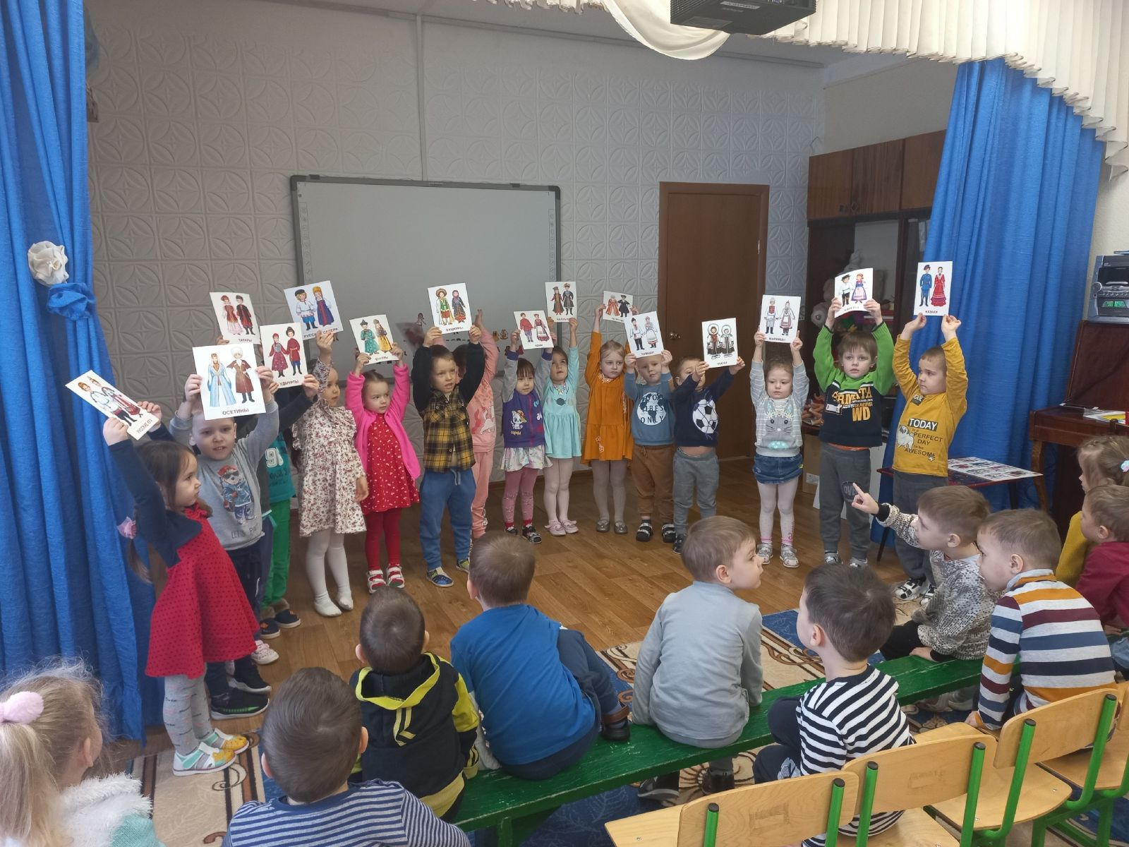 Опубликовано: 13.02.2023Сегодня сотрудники Дома дружбы народов провели с воспитанниками мероприятие в рамках Года национальных традиций и культур. Ребята поговорили о национальностях, проживающих в Республике Татарстан, о культуре, традициях, обычаях, поиграли в игры./Бүген Халыклар дуслыгы йорты хезмәткәрләре балалар белән милли традицияләр һәм мәдәниятләр елы кысаларында чара үткәрделәр. Балалар Татарстан Республикасында яшәүче милләтләр, мәдәният, традицияләр, гореф-гадәтләр турында сөйләштеләр, уеннар уйнадылар.