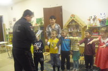 В целях профилактики дорожно-транспортного травматизма с детьми дошкольного возраста инспектор по пропаганде ГИБДД ОМВД России по Нурлатскому району Мугайнутдинов Ринат Гайнутдинович провел встречу с воспитанниками нашего детского сада. Дети с удовольствием провели практическое занятие в макете микрорайона города, вспомнили и закрепили знания по правилам дорожного движения, повторили схему пути «Детский сад –дом, дом-детский сад», в конце каждый ребенок на память о встрече получил светоотражающие браслеты.