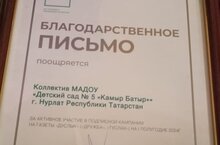 Муниципальное автономное дошкольное образовательное учреждение «Детский сад №5 «Камыр Батыр» общеразвивающего вида" г. Нурлат РТ\ Татарстан Республикасы Нурлат шәһәре “Балаларны һәрьяклап үстерү төрендәге 5 нче номерлы “Камыр Батыр” балалар бакчасы” муниципаль автоном мәктәпкәчә белем учреждениесе - новости