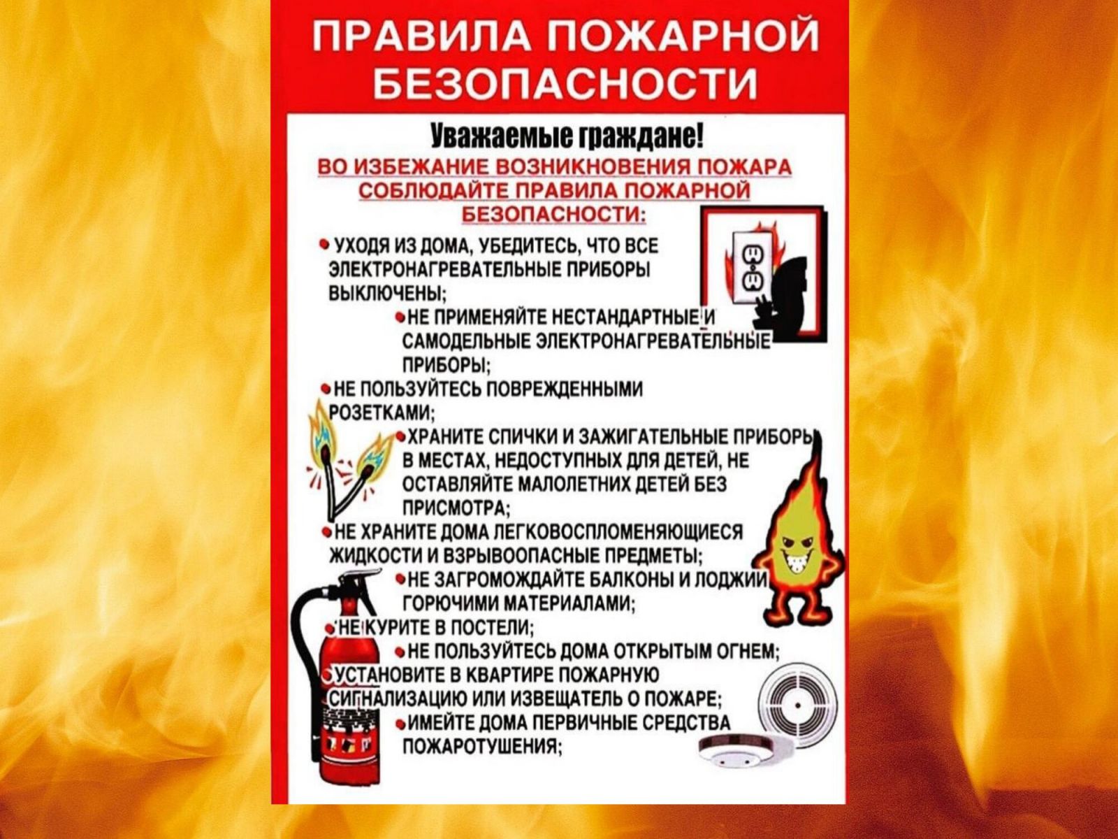 Памятка правил пожарной безопасности в быту
