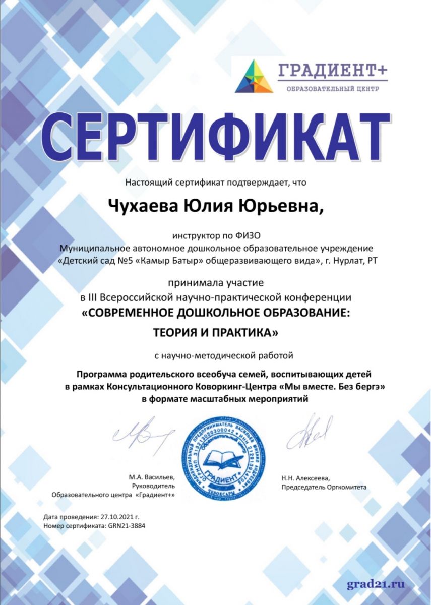 Консультант по физическому развитию Чухаева Ю.Ю