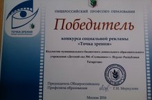 Наш коллектив МБДОУ "Детский сад № 6 "Солнышко"г. Нурлат Республики Татарстан является ПОБЕДИТЕЛЕМ в конкурсе социальной рекламы "Точка зрения"
