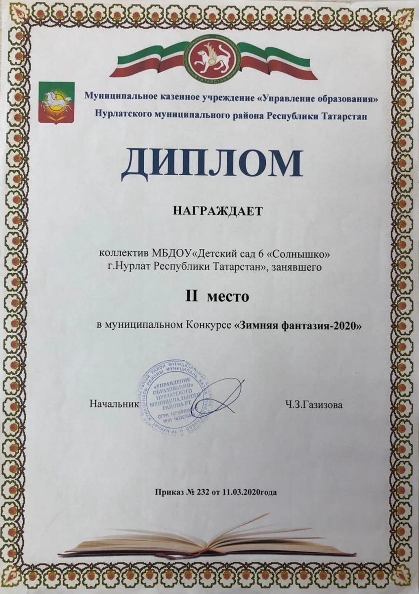2020г. Диплом 2 место в муниципальном конкурсе "Зимняя фантазия 2020" Диплом