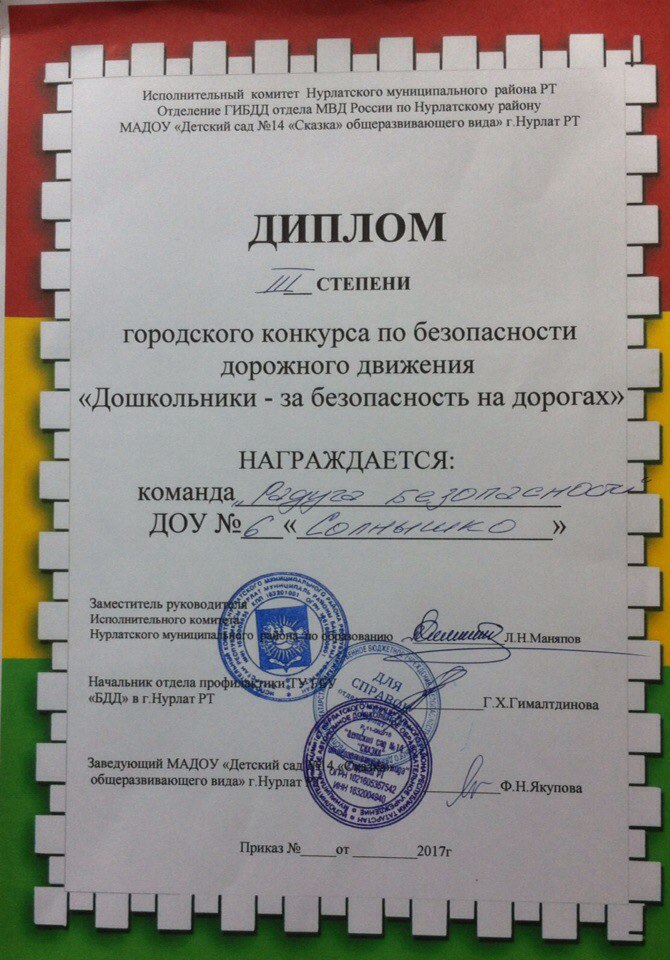 Бүген безнең бакчабызның  мәктәпкә  әзерлек  төркеме  балалары "Балалар - юлларда иминлек  өчен" муниципаль конкурста катнашып, 3 урын яуладылар.