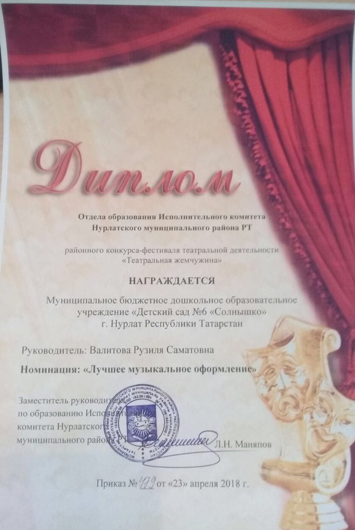 Опубликовано: 23.04.2018Муниципаль "Театраль энҗе бөртеге" бәйгесендә катнашып, "Иң яхшы музыкаль бизәлеш" номинациясенә лаек булдык!
