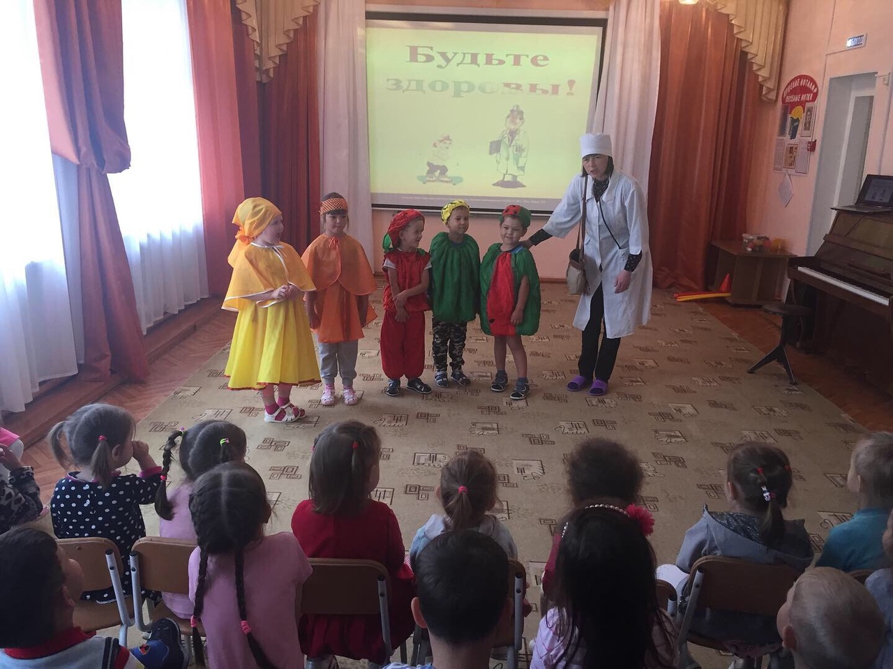 Опубликовано: 06.08.2019Сегодня в нашем детском саду прошло развлечение на тему: «Витамины я люблю - быть здоровым я хочу». Основной целью развлечения было формирование представления детей о здоровом образе жизни, о пользе овощей и фруктов для здоровья и хорошего настроения.