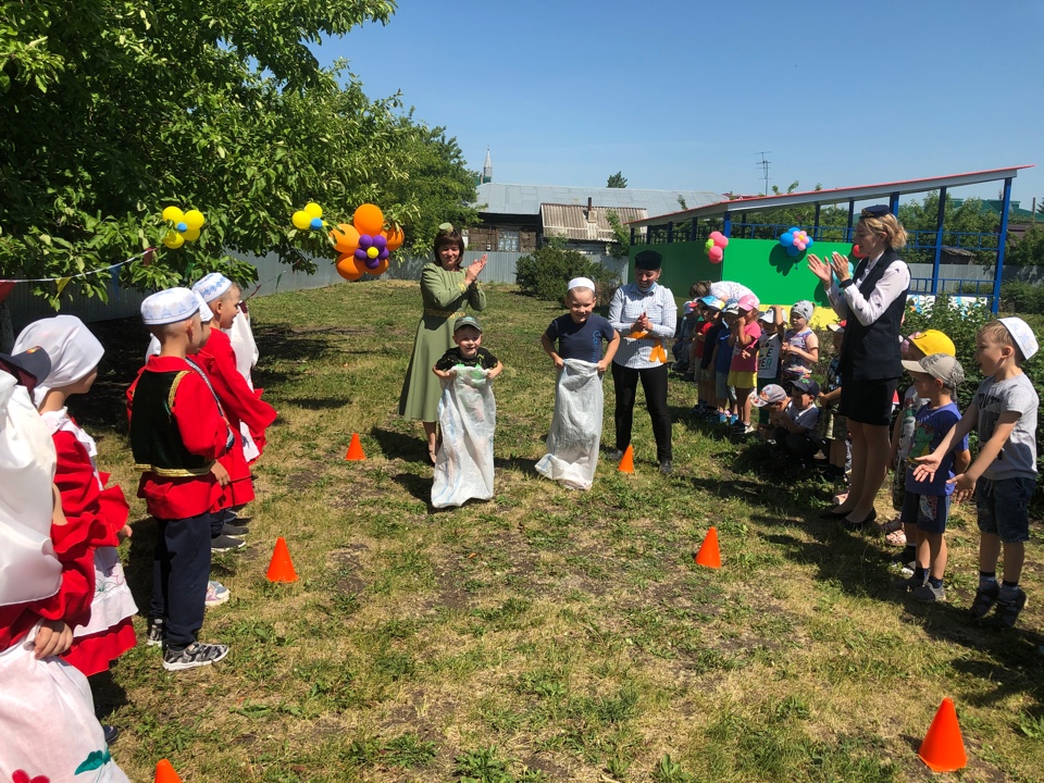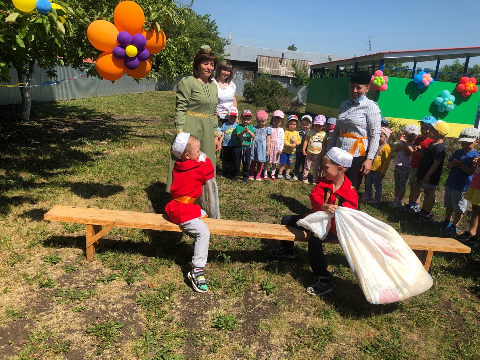 Опубликовано: 15.06.2021Сабантуй - это весёлое празднование окончания полевых и посевных работ, на котором не утихают национальные песни и пляски, шуточные конкурсы и спортивные состязания. Вот и в нашем детском саду прошел традиционный праздник «Сабантуй».