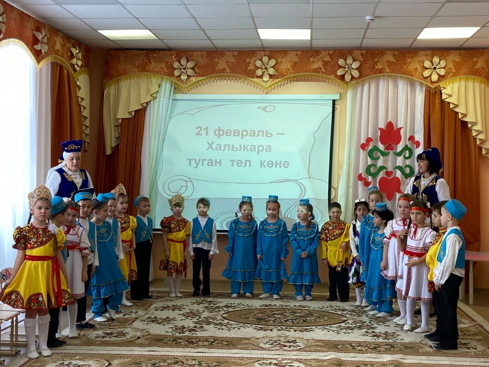 Безнең балалар бакчасында Халыкара туган тел көненә багышланган чара узды. Малайлар һәм кызлар рус һәм татар халык әкиятләрен тыңладылар һәм сәхнәләштерделәр, табышмаклар яздылар, халык уеннары уйнадылар, әйлән-бәйлән уйнадылар, викторинада катнаштылар, җырлар җырладылар. Балалар белән әңгәмәләрдә милли телгә сакчыл карарга, гореф-гадәтләрне хөрмәт итәргә кирәклеге билгеләп үтелде. Үз телебез белән горурланабыз, чөнки тел-халыкның танылуы, анда аның табигате, җаны һәм көнкүреше ишетелә.