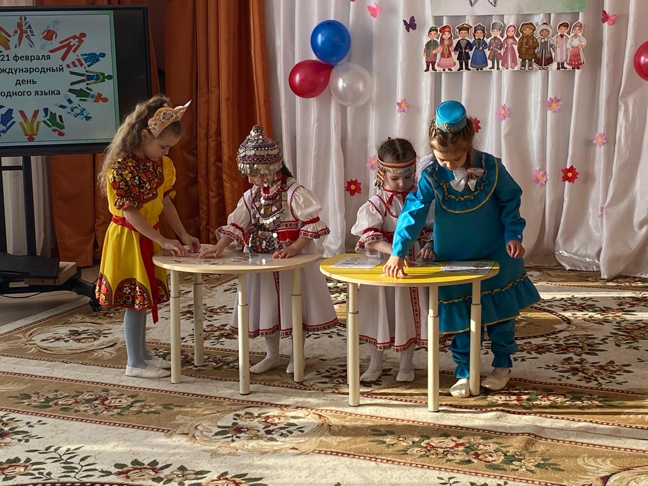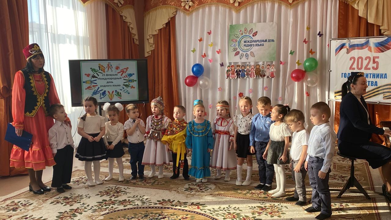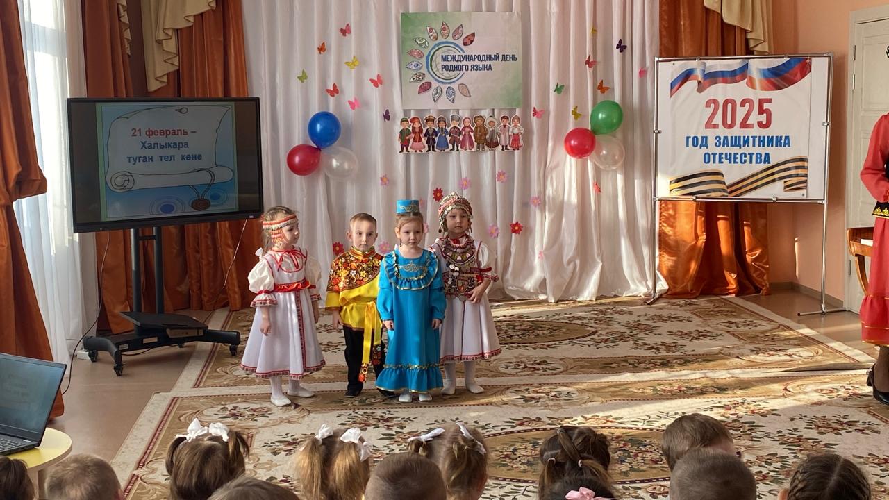 Халыкара туган тел көненә багышланган тематик көн узды. Бәйрәмнең төп максаты-телләрнең мәдәни күптөрлелегенә, туган телгә ярдәм итү. "Туган тел көне" ндә балалар рус һәм татар халык җырларын «Туган тел», санагычлар җырладылар. Балалар бик теләп һәм шатланып әйлән-бәйлән уйнадылар. Балалар белән «Безнең Ватан-Татарстан»дигән әңгәмә үткәрелде. Балаларны дәүләт символикасы, милли киемнәр үрнәкләре, татар милли символикасы белән көнкүреш әйберләре белән таныштырдылар. «Бизәкне куй» һәм «Парны тап» дидактик уенын уйнадылар. Мондый чаралар Туган тел, Туган ил турында белемнәрне киңәйтә һәм тирәнәйтә, балаларның үз халкының мәдәнияте белән кызыксынуын арттыра, телне саклап калуга һәм үстерүгә ярдәм итә, гореф-гадәтләргә хөрмәт тәрбияли дип ышанабыз.