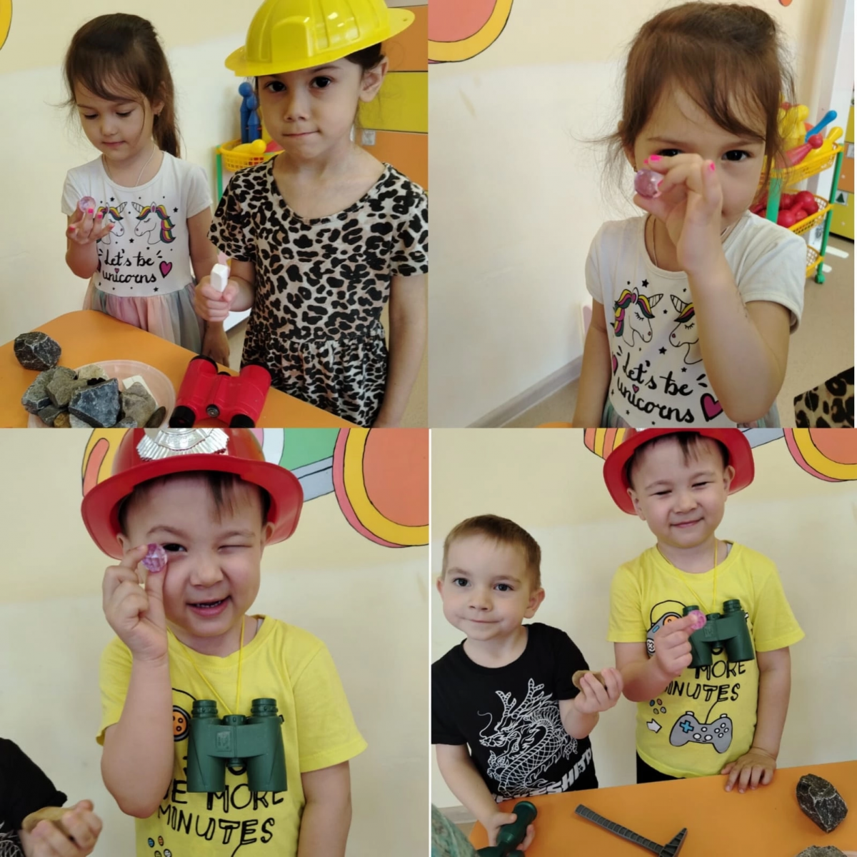 Ребята много узнали о работе геолога. Также узнали, что из ценных пород делают украшения. Познакомились с такими камнями, как малахит, топаз, оникс, янтарь, сердолик.