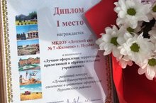 Мы заняли 1 место в номинации "Лучшее оформление территории,прилегающей к образовательному учреждению".Бүген шәһәребезнең үзәк мәйданында берьюлы өч бәйрәм билгеләп үтелә: Татарстан Республикасы көне,Нурлат шәһәре көне һәм нефть һәм газ сәнәгате хезмәткәрләре көне. Шушы истәлекле көндә безнең мөдир Семочкина Альбина Ирек кызы җитәкчелегендәге балалар бакчасы коллективы "Нурлат районының иң яхшы төзеклеге,яшелләндерү һәм чәчәк бизәлеше"конкурсында призлы урынга лаек булды. "Мәгариф учреждениесе янындагы территорияне иң яхшы бизәү"номинациясендә Без 1 урын алдык.