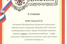Муниципальное бюджетное дошкольное образовательное учреждение «Детский сад №7 «Колосок» комбинированного вида г. Нурлат Республики Татарстан / Татарстан Республикасы Нурлат шәһәре 7нче номерлы "Башаккай"катнаш төрдәге балалар бакчасы Муниципаль бюджет мәктәпкәчә белем бирү учреждениясе