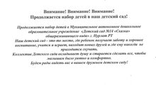 Продолжается набор детей в Детский сад №14 "Сказка"