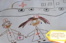 Дети рисовали рисунки в благодарность врачам.