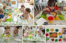 «Нурлар» төркемендә бүген гадәти булмаган сәфәр! Гадәти уеннар урынына - иҗади эксперимент! Без яңа техника белән таныштык – яфраклардан тукымага рәсем төшердек!