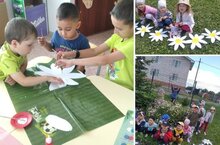 "Гномиклар" төркеме балалары балалар бакчасында үскән ромашкаларның матурлыгыннан илһамланып, аларны төсле кәгазьдән ясарга булдылар!