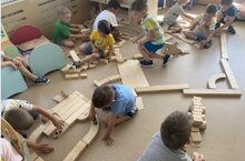 Бүген "Нурлар" төркемендә зур төзелеш башланды! Яшь архитекторлар һәм инженерлар фантазиягә ирек бирделәр һәм "Бабашка" агач конструкторыннан күз алдына китерә алган бөтен нәрсәне ясадылар! Монда тиз машиналар да, уңайлы йортлар да, бормалы юллар да бар.