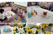 В 1 младшей группе «Ягодки» ребята посмотрели опыт «Цветной вулкан» — яркий вулкан кипел, бурлил и красиво лился из посуды. Во время занятия мы закрепили цвета: синий, красный, жёлтый — поучительно и весело! В средней группе «Радуга» прошло занятие‑эксперимент с водой «Тонет — не тонет». Дети пробовали разные предметы, наблюдали за результатом и обсуждали, почему одни вещи тонут, а другие держатся на поверхности.