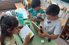 Воспитанники старшей группы «Нурлар» осваивают профессию дизайнера по маникюру и это у них неплохо получается. Сегодня им снова понадобился упаковочный картон, детки стали мастерами маникюра и сами выбирали дизайн для ручек.