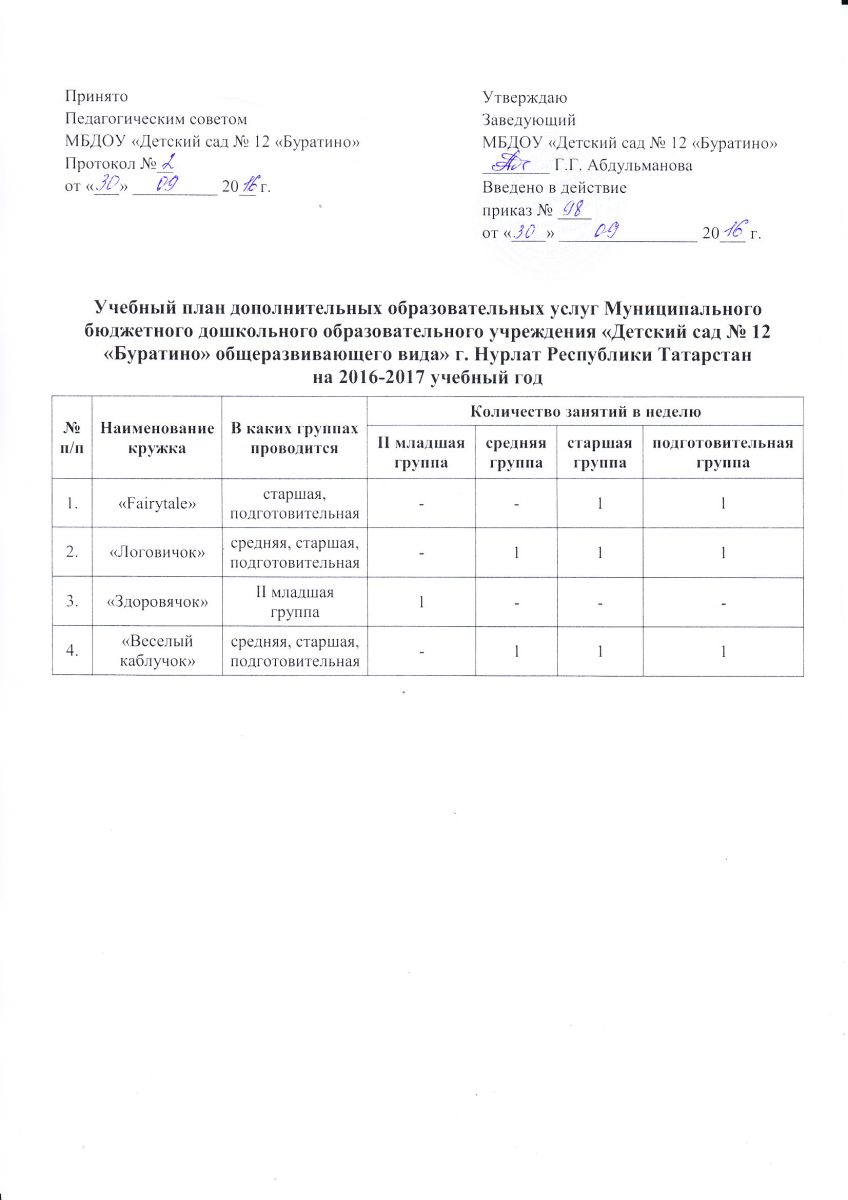Учебный план платных дополнительных образовательных услуг на 2020-2021 учебный год
