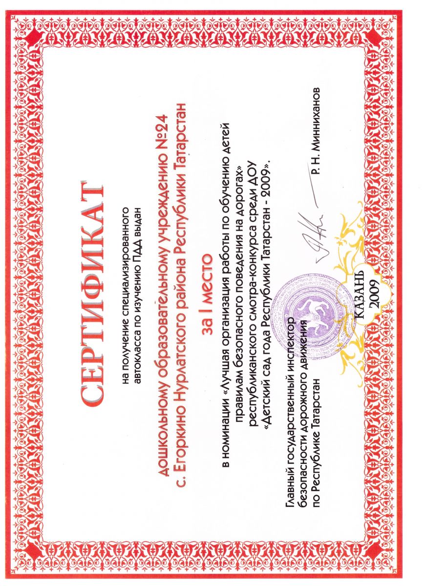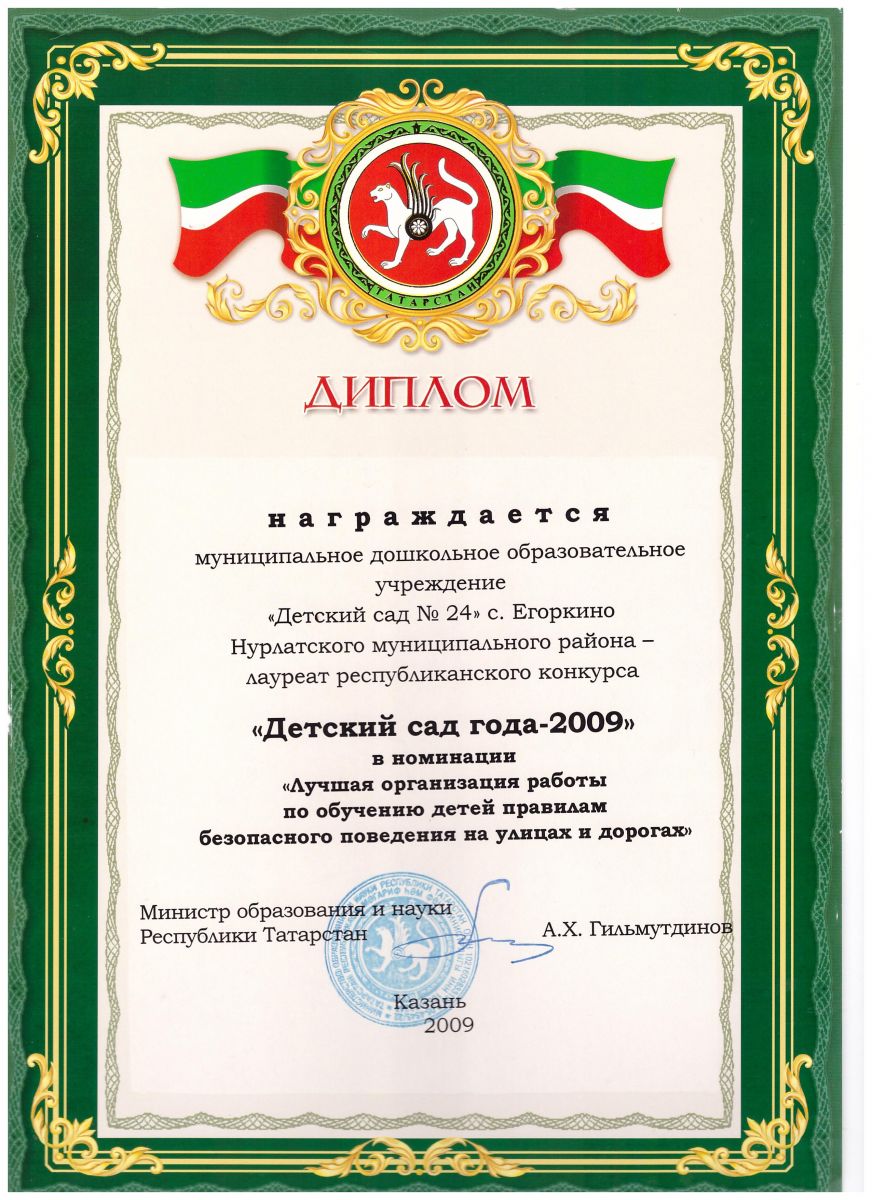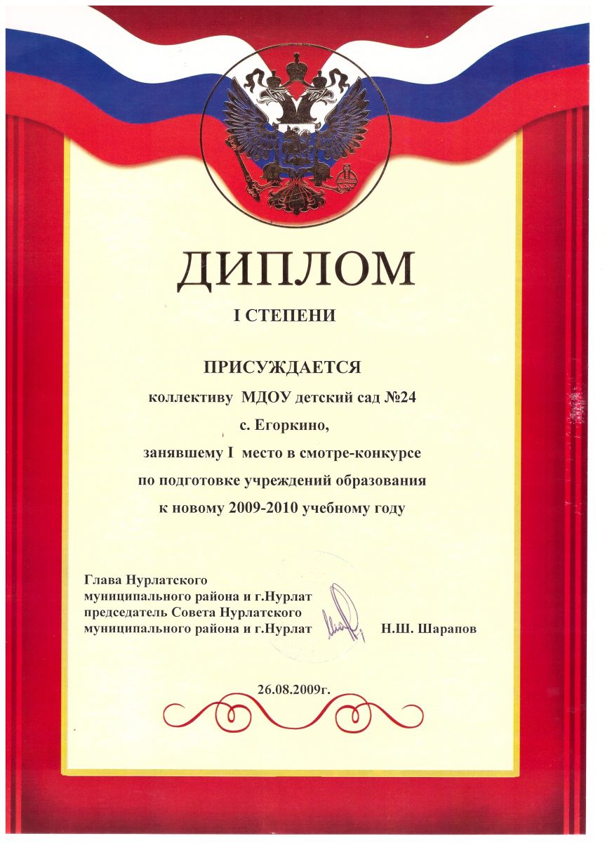 Диплом за 1 место в смотре-конкурсе по подготовке учреждений к новому 2009-2010уч.г.