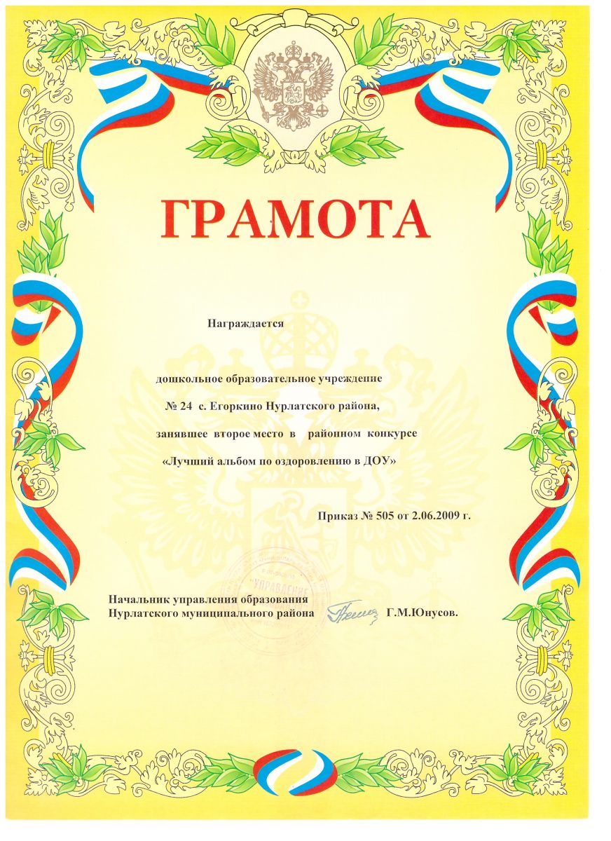 Грамота за 2 место в районном конкурсе "Лучший альбом по оздоровлению в ДОУ"