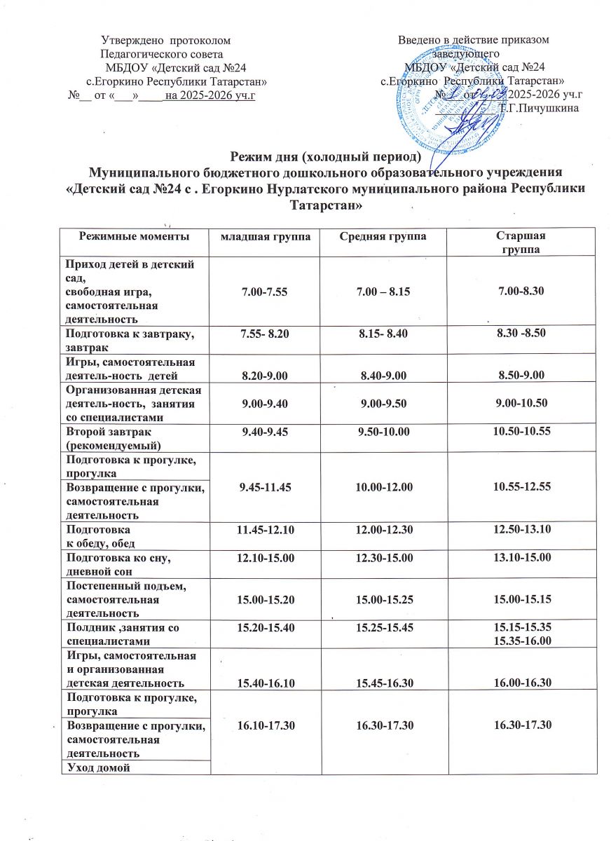 Режим дня (тёплый период) на 2024-2025 уч.год