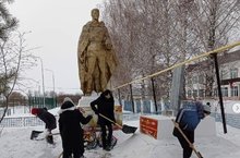 В рамках месячника "Гражданско-патриотического воспитания" Волонтёры Победы провели очистку Памятника павшим солдатам