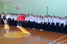 Призеры и победители школьного этапа смотра строя и песни были награждены на торжественной линейке в честь празднования Дня защитника Отечества.