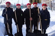 В преддверии Дня защитника Отечества Юнармейцы отряда имени П.Е. Михеева приняли участие в традиционной акции по уборке снега перед памятником погибшим односельчанам во время Великой Отечественной войны.
