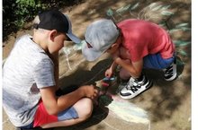 Конкурс рисунков на асфальте "Пусть мир станет ярким!" в пришкольном лагере "Патриот"