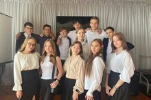 Воспитанники театрального кружка приняли участие в концерте ко дню пожилого человека со смешной сценкой "Хочу я быть учителем"