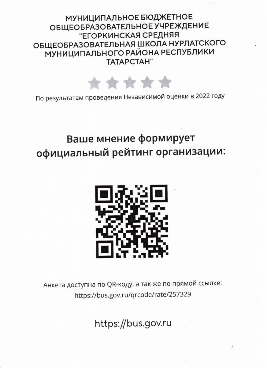 Муниципальное бюджетное общеобразовательное учреждение «Егоркинская средняя общеобразовательная школа Нурлатского муниципального района Республики Татарстан"/Татарстан Республикасы Нурлат муниципаль районы "Егоркино урта гомуми белем мәктәбе" муниципаль бюджет гомуми белем учреждениесе