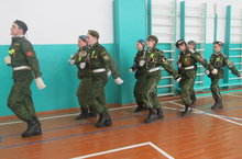В «А ну-ка парни» старшеклассники состязались в своем удальстве и силе. И отжимание от пола, и поднятие гири показывали насколько готовы наши юноши к несению воинской службы. Они продемонстрировали свое умение разбирать и собирать автомат Калашникова, надевать и снимать противогаз и быстренько приготовить вкусный солдатский борщ.