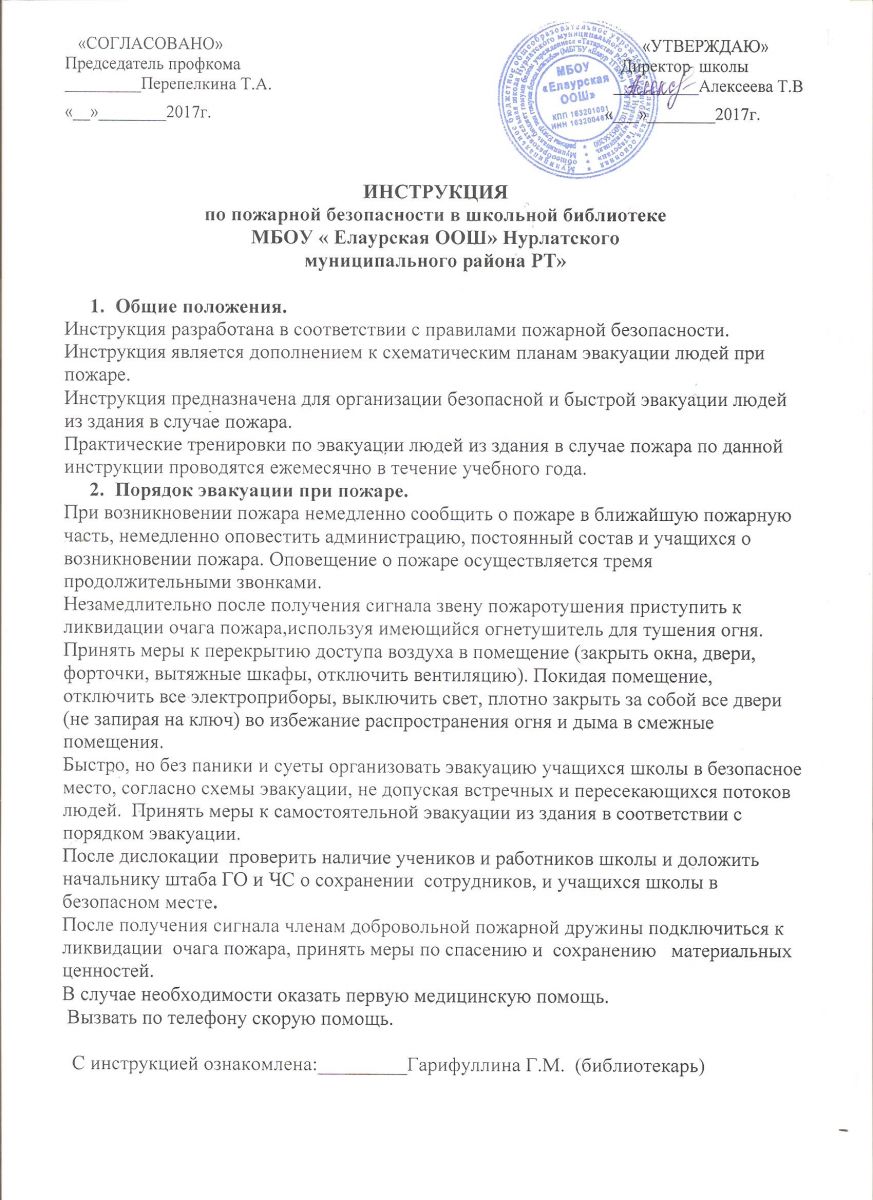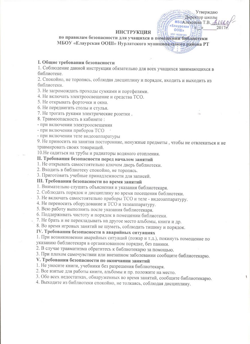 Инструкция по правилам безопасности для учащихся в помещении библиотеки