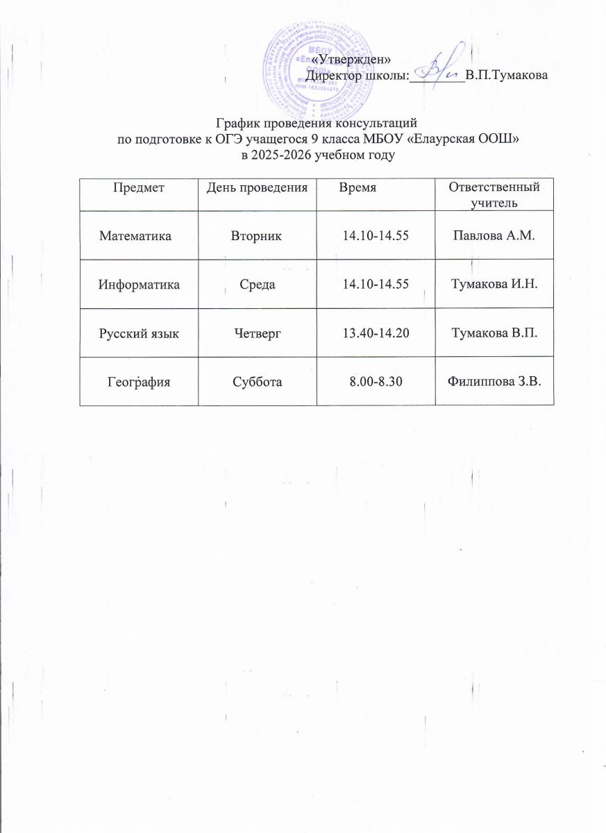 График консультаций по подготовке к ОГЭ в 2025-2026 учебном году
