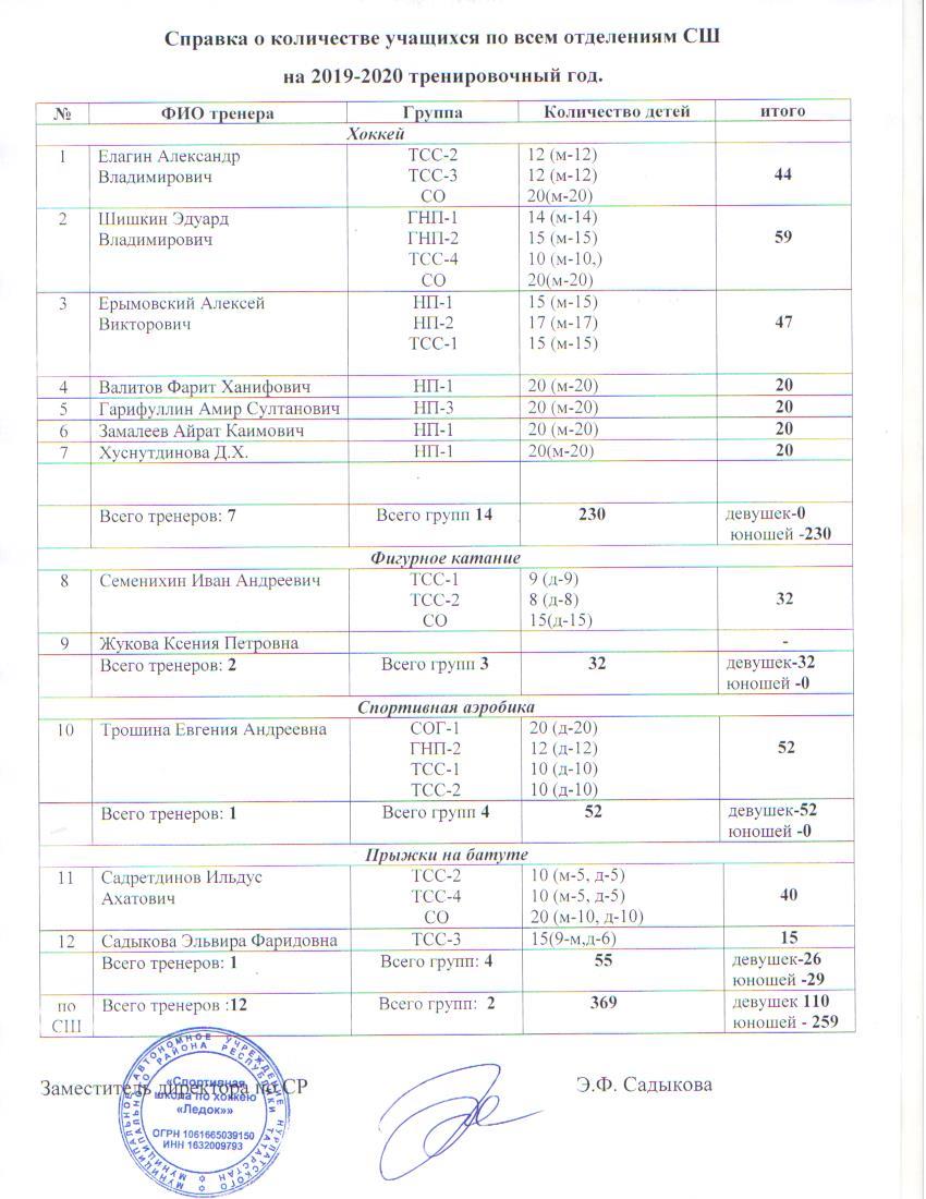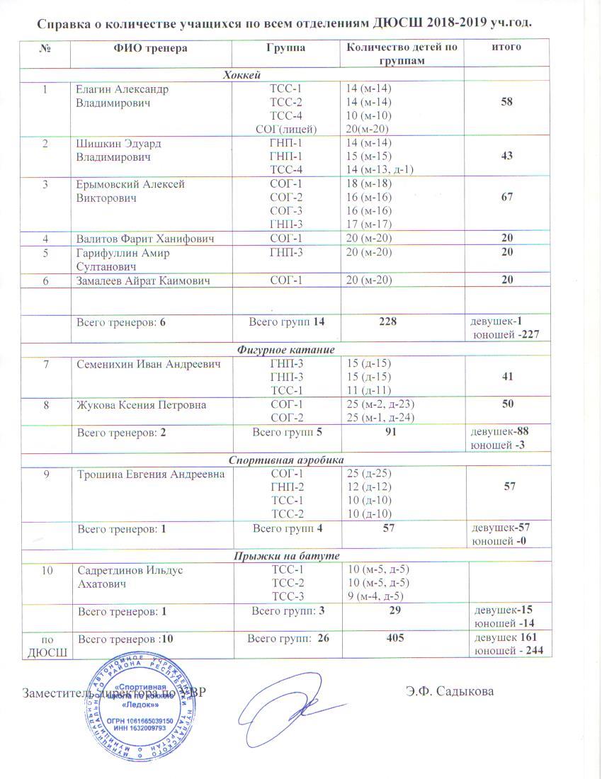 Справка по всем отделениям ДЮСШ о количестве учащихся 2024-2025 учебного года