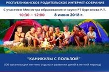 8 июня состоится республиканское интернет- собрание. С участием Министра образования РТ Бурганова Р.Т. - «Каникулы с пользой».Об организации летнего отдыха и развитие детей в летний период.