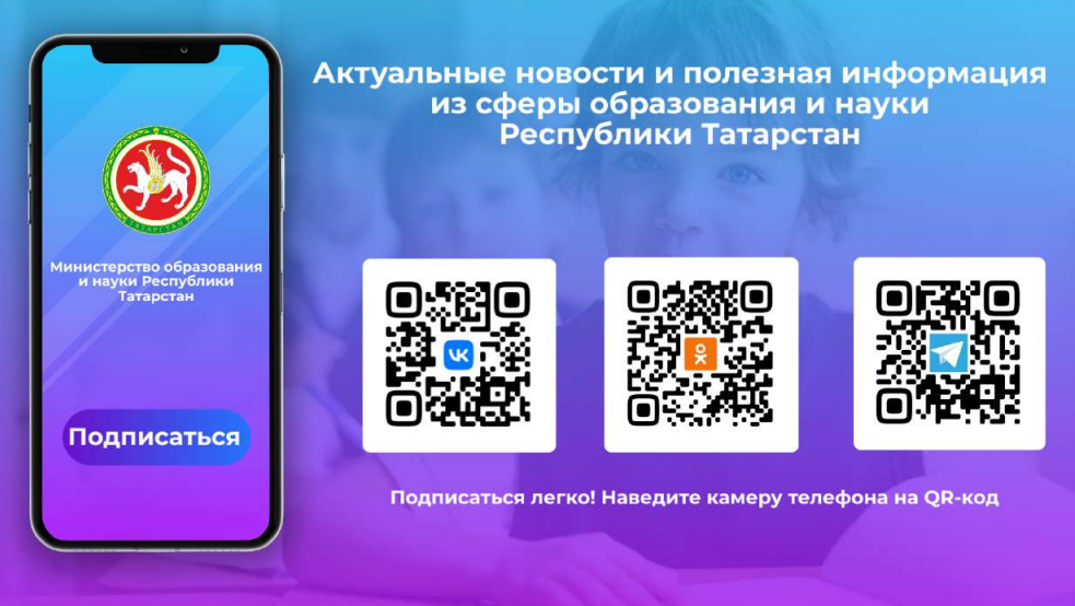 Чтобы быть в курсе последних новостей, получать достоверную информацию - подписывайтесь на официальные аккаунты Министерства образования и науки Республики Татарстан https://t.me/moinrt