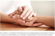 26 сентября т.г. в Аппарате Уполномоченного по правам ребенка в Республике Татарстан (г. Казань, ул. Карла Маркса, д. 61) пройдет День психологической помощи. В рамках данного мероприятия взрослые и дети в конфиденциальной обстановке смогут пообщаться с профессиональными психологами на волнующие их темы, в том числе детско-родительских отношений, отношений со сверстниками, конфликтов в подростковой среде, и по другим «детским» вопросам (проблемам) психологического плана, получить профессиональную консультацию и рекомендации.
