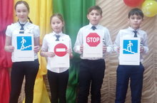 выступление агидбригады ЮИД перед учащихся начальных классов 01.04.2019