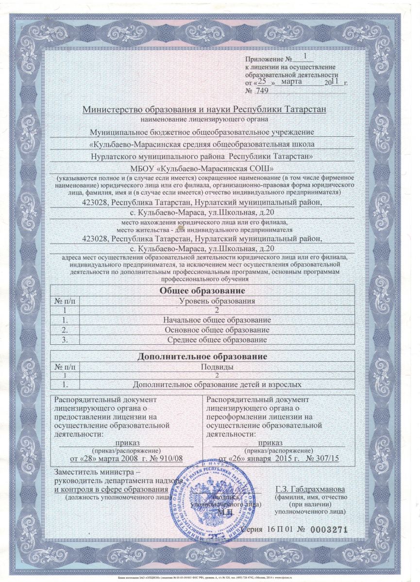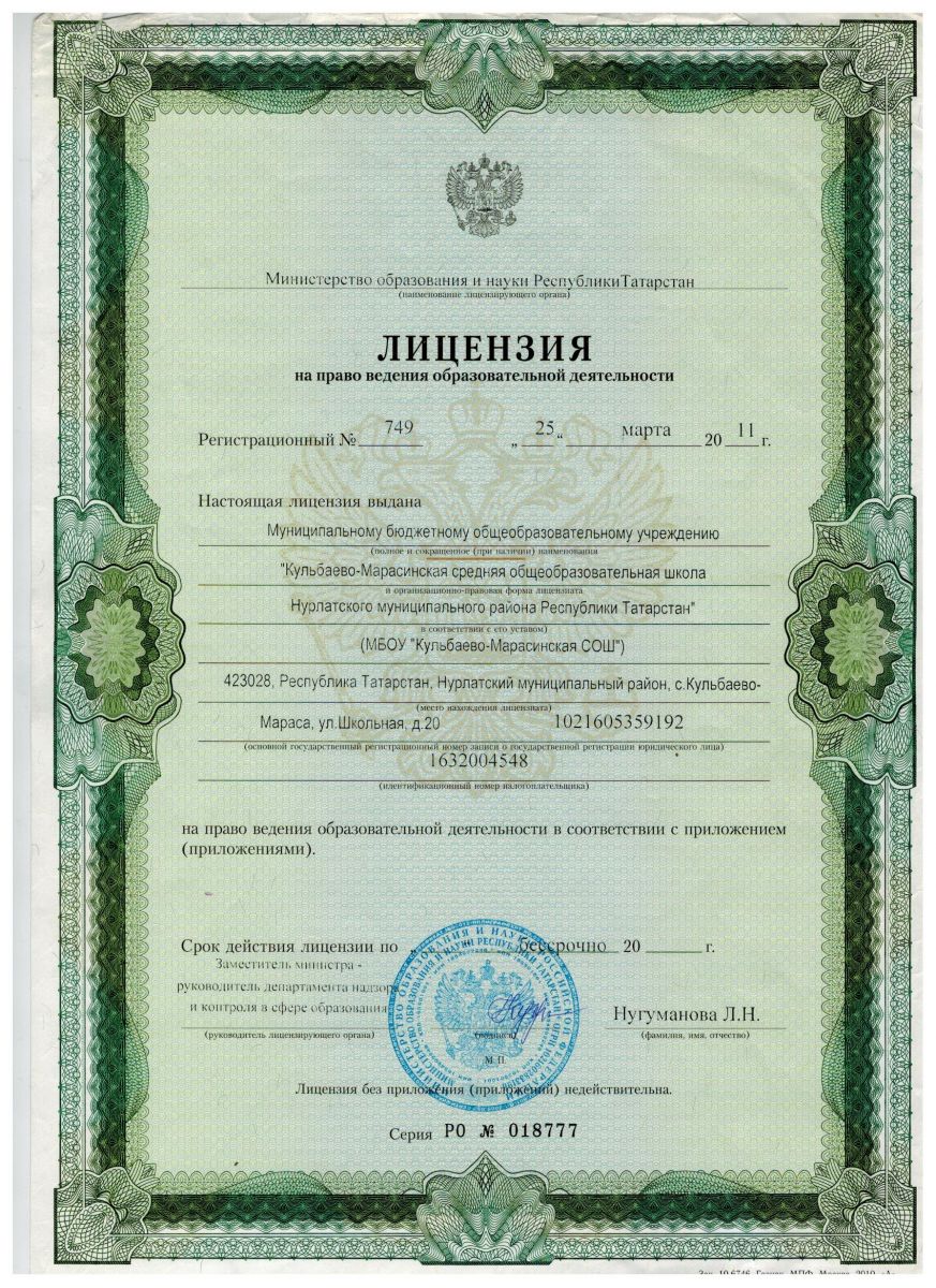 Лицензия МБОУ "Кульбаево-Марасинская СОШ"