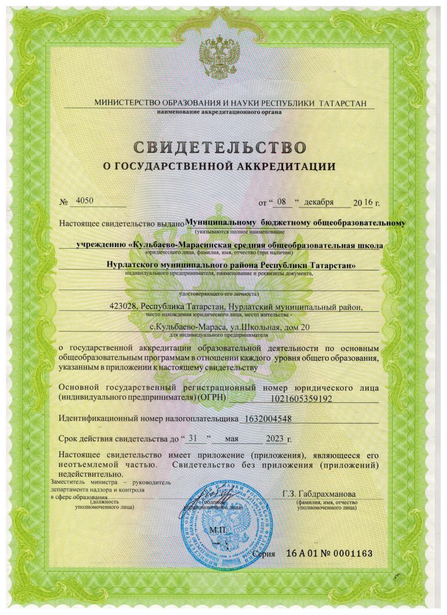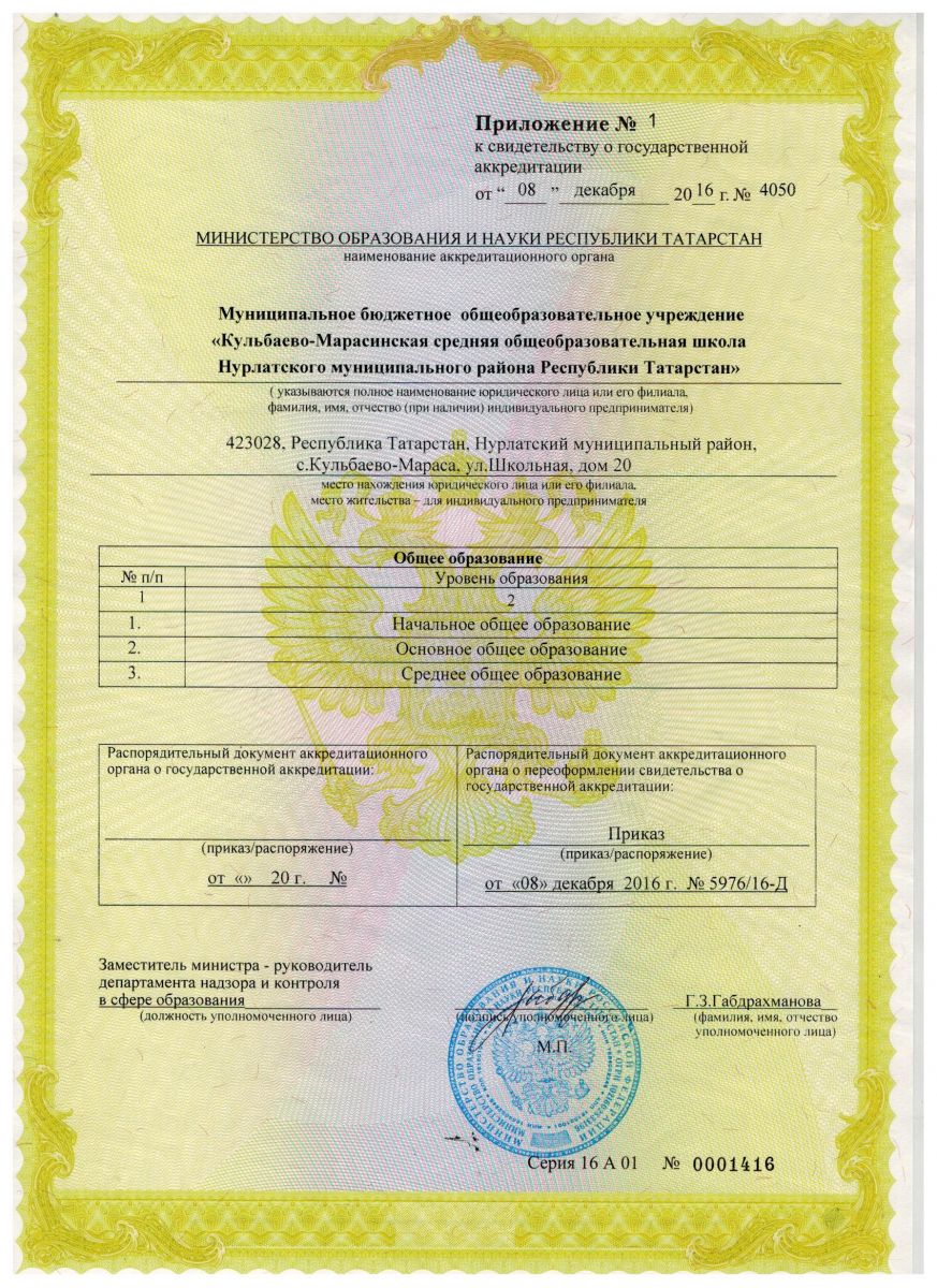 Аккредитация МБОУ "Кульбаево-Марасинская СОШ"