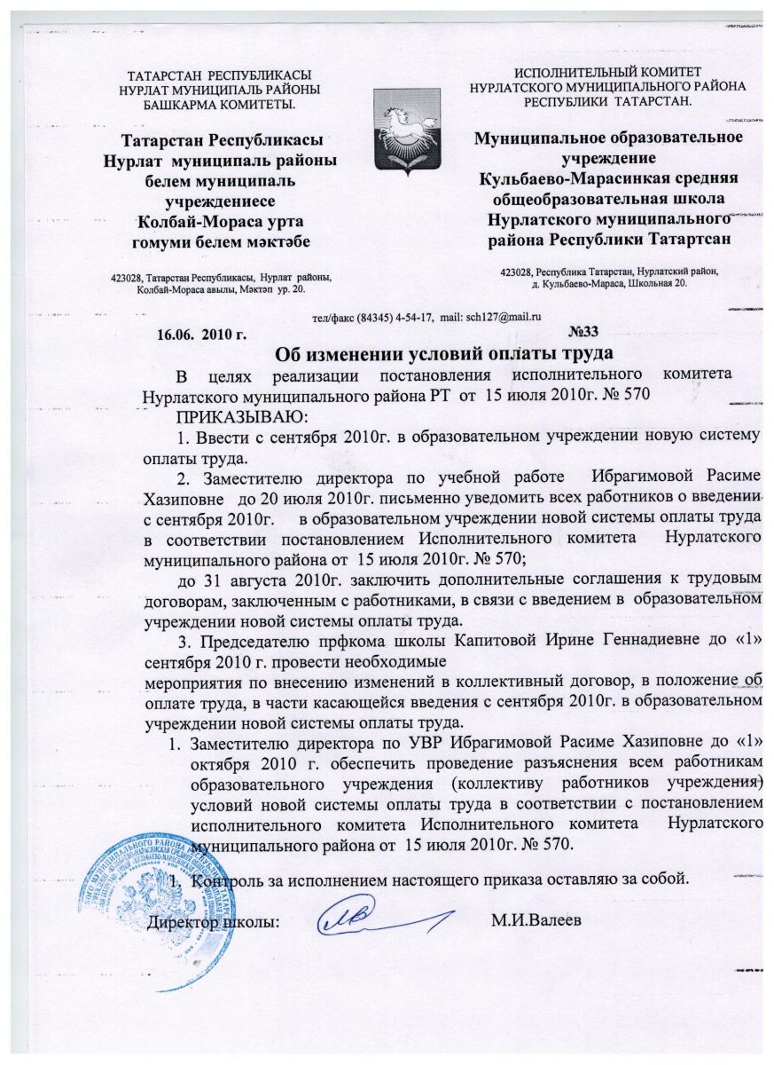 Коллективный договор МБОУ "Кульбаево-Марасинская СОШ" на 2017-2019 год