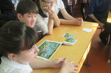 Рәсемдә: уен-дәреснең бер этабы- сорауларга дөрес җавап бәрабәренә рәсемдәге сулыкны төрле чүп-чардан һәм пычраклардан чистарту