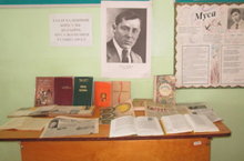 Мәктәптә Муса Җәлил туган көнгә багышланган күргәзмә эшли. Күргәзмәдә әдипнең балачагы, тормыш юлы, иҗади эшчңнлеге, тоткынлыктагы тормышы турында мәгълүмат тупланган китаплар куелган. Стена газетасында шагыйрь иҗатына багышланган кроссворд та урын алган.
