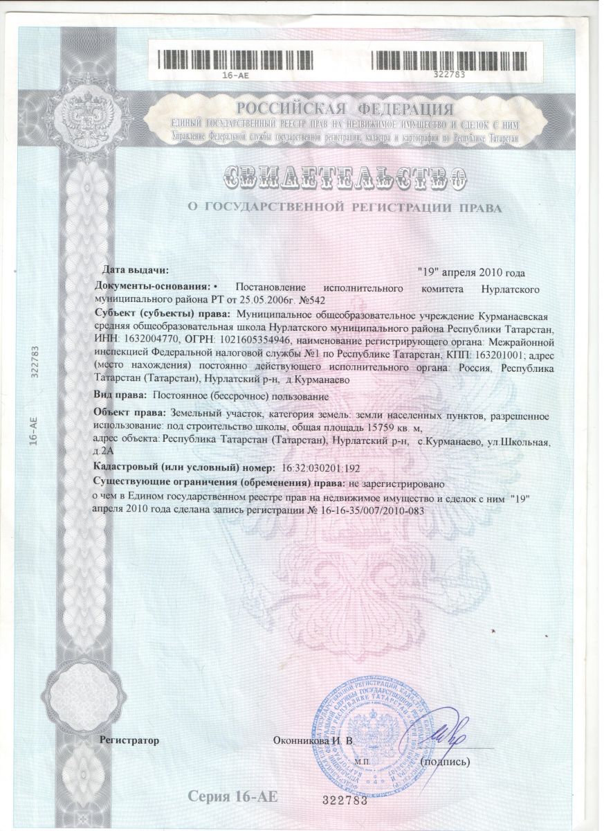 СВИДЕТЕЛЬСТВО О ГОСУДАРСТВЕННОЙ РЕГИСТРАЦИИ ПРАВА