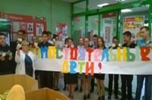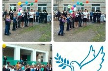 Учащиеся нашей школы единовременно запустили в небо в назначенное время прикрепленных к воздушным шарам бумажных голубей, на которых были написаны имена погибших участников Великой Отечественной войны или тружеников тыла. -