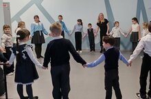 Первый трек программы «Орлята России» в 2025 году для учащихся 1-4 классов – «Орлёнок-Доброволец» Трек «Орлёнок-Доброволец» направлен на развитие у школьников начальных классов таких ценностей, как милосердие, доброта и забота. Орлята знакомятся с понятиями «волонтёр», «доброволец», «волонтёрское движение», в том числе на примере тимуровского движения. Провели обсуждение на тему добрых поступков, посмотрели мультфильмы и организовали флешмоб. Также школьники составили Круг Добра. / 2025 елда 1-4 сыйныф укучылары өчен «Орленок – Доброволец» программасының беренче трегы «Орленок-Доброволец» трегы башлангыч сыйныф укучыларында шәфкатьлелек, игелеклелек һәм кайгыртучанлык кебек кыйммәтләрне үстерүгә юнәлдерелгән. Орляталар «волонтер», «доброволец», «волонтерлык хәрәкәте» төшенчәләре белән танышалар, шул исәптән Тимур хәрәкәте мисалында. Изге гамәлләр темасына фикер алыштылар, мультфильмнар карадылар һәм флешмоб оештырдылар. Укучылар шулай ук Игелек даирәсен тәшкил иттеләр.