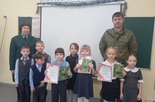 Награждение первоклассников, занявших призовые места в конкурсе " Я и Красная книга РТ", представителями Спасского Заповедника. / "Мин һәм ТРның Кызыл китабы" конкурсында призлы урыннар алган беренче сыйныф укучыларын Спас тыюлыгы вәкилләре белән бүләкләү.